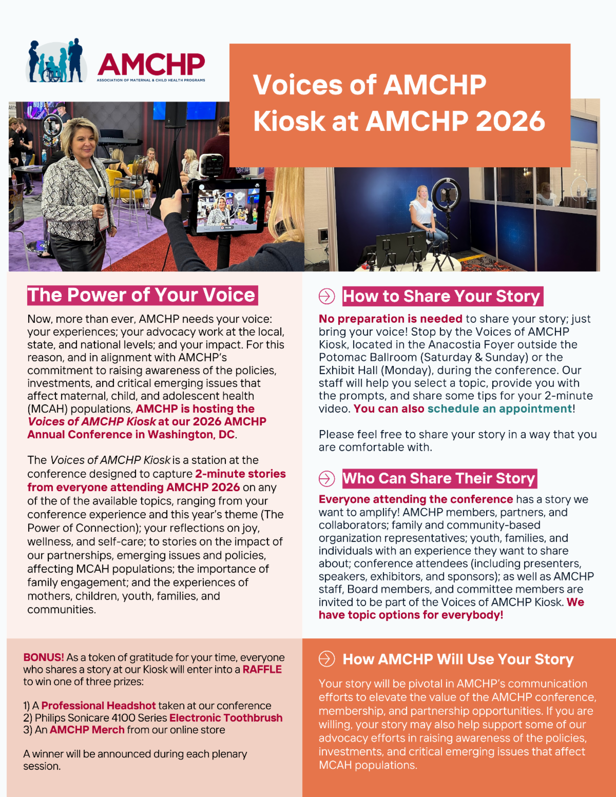 - Grand Prize: Complimentary registration to AMCHP 2027 (a value of up to $1,100!).