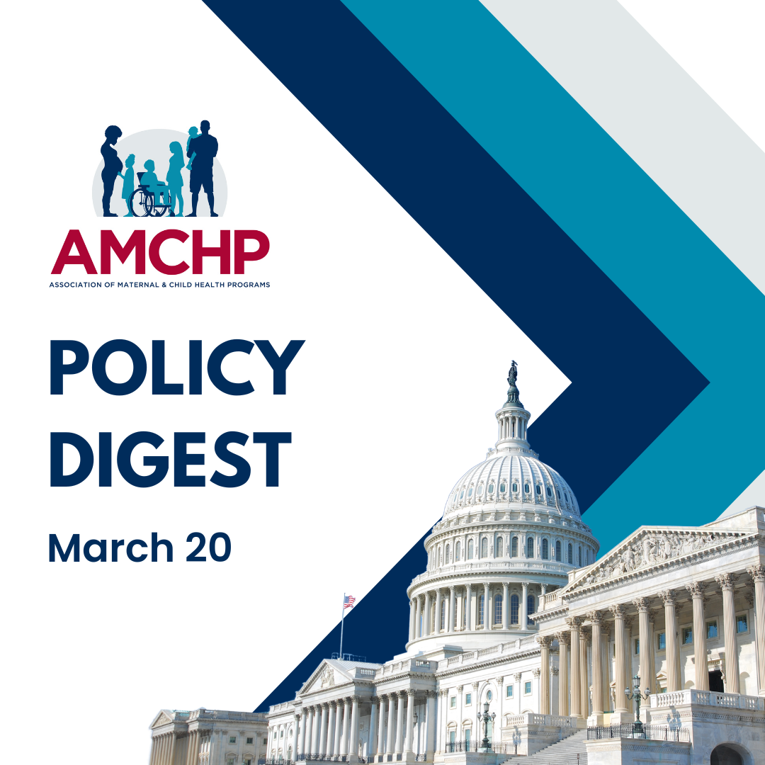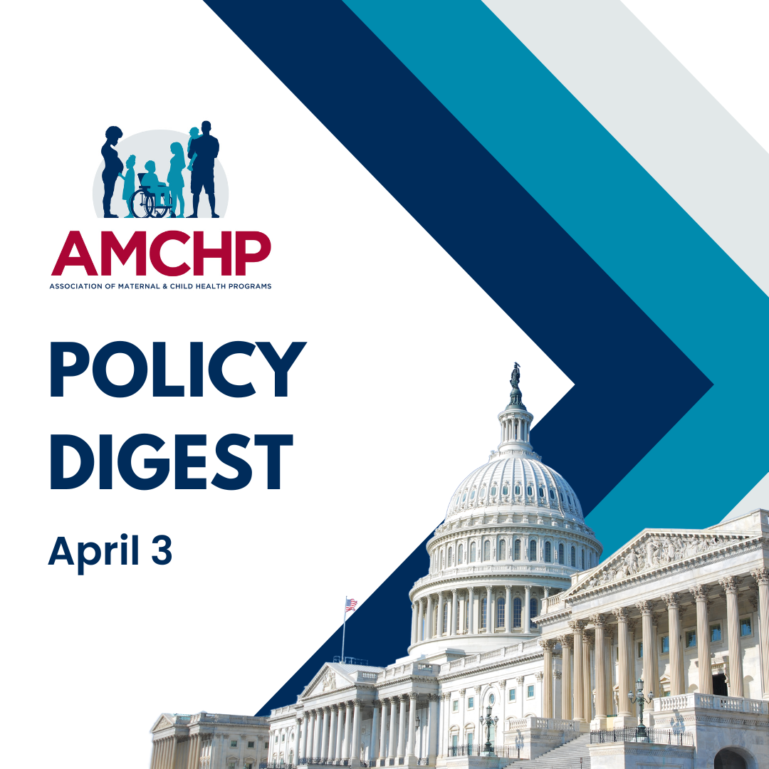 The AMCHP Policy Digest strives to enhance and streamline your awareness of maternal and child health (MCH) policy issues spanning Congress, the Executive Branch, and the Judiciary Branch. Within this newsletter, you will find key information and insights on the growing complexities of government affairs, the MCH policy landscape, and AMCHP’s policy and advocacy initiatives.