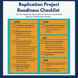 Interested in building partnerships with other MCH organizations while enhancing your organizational capacity? Submit to be a part of AMCHP’s Replication Projects, NOW ACCEPTING PROPOSALS THROUGH June 3!
